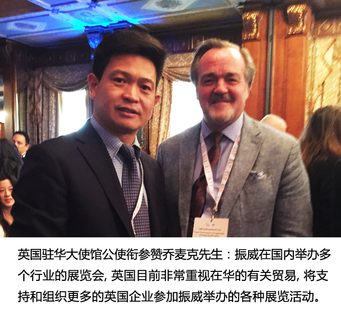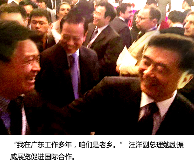 會后汪洋副總理接見了中紡集團(tuán)、北京首都農(nóng)業(yè)集團(tuán)、振威展覽集團(tuán)等企業(yè)代表。當(dāng)與代表們親切握手時(shí),聽說振威展覽集團(tuán)總經(jīng)理張學(xué)山來自廣東省,汪洋副總理風(fēng)趣的說,那我們算是老鄉(xiāng)了,我在廣東工作過多年,希望展會在國際交流與貿(mào)易合作中,起到橋梁和紐帶作用。