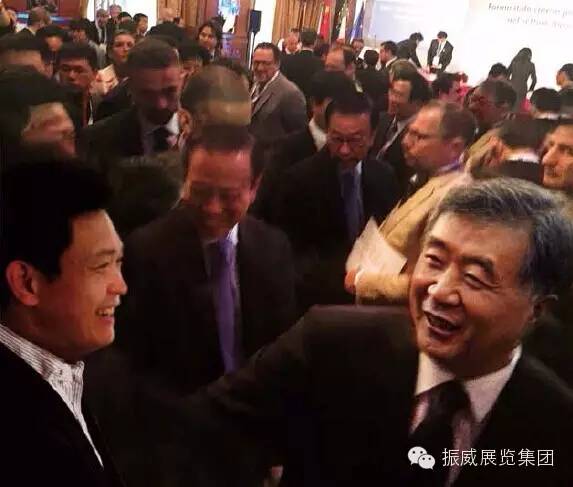 2015米蘭世博會中國國家館日活動期間,中國國務(wù)院副總理汪洋與振威展覽股份董事長張學(xué)山親切交談