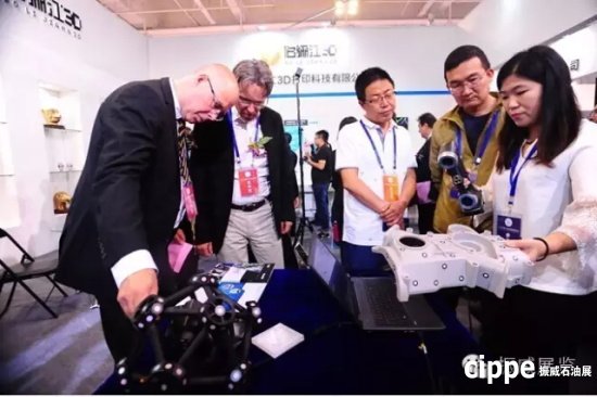 外國(guó)專家在伯驪江3D打印機(jī)展區(qū)調(diào)研3D打印效果