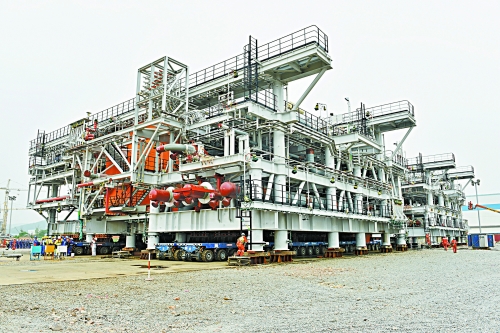 圖為PAU211模塊準備裝船發(fā)運現(xiàn)場。