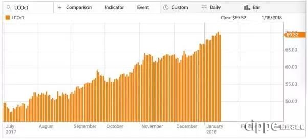 從去年7月最低價(jià)46.12美元/桶起漲以來,布倫特原油期貨在過去的7個(gè)月內(nèi),已經(jīng)上漲了近53%。