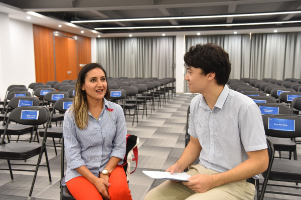 羅馬尼亞議會眾議院外交顧問Popa Diana-Melania女士(左)與振威員工交流(右)