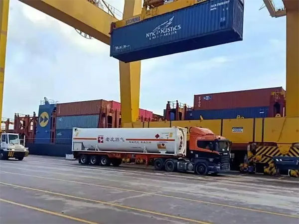 第一批LNG罐式集裝箱于今年3月25日從民都魯港出發(fā),已運(yùn)抵中國(guó)山東龍口港。